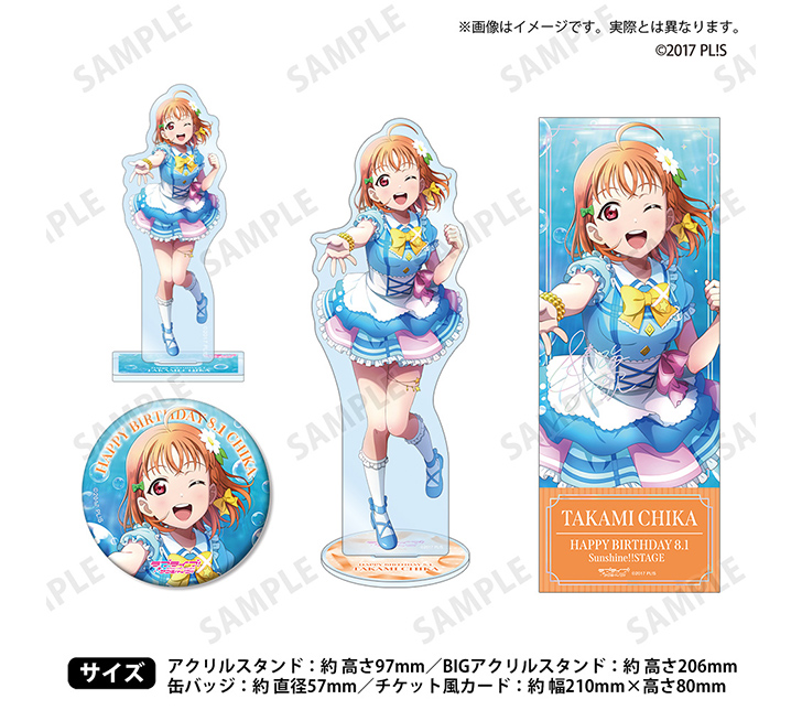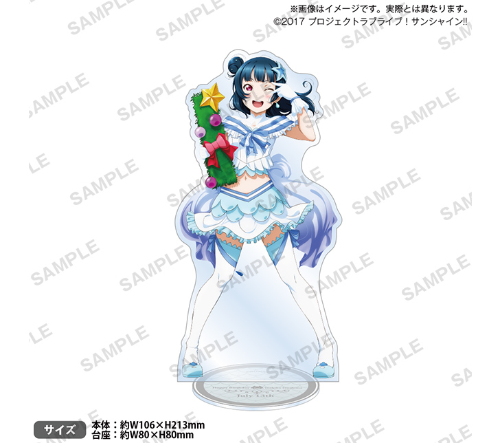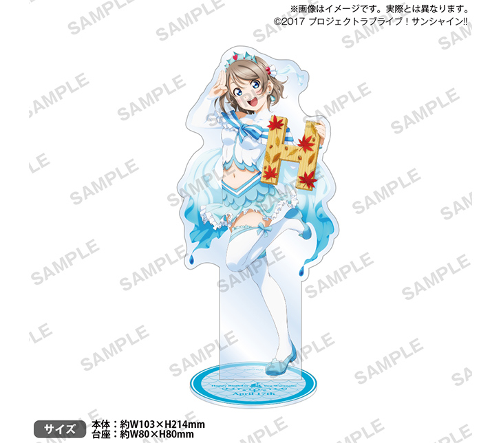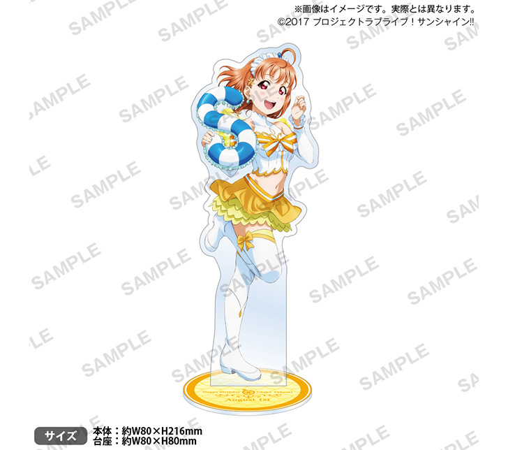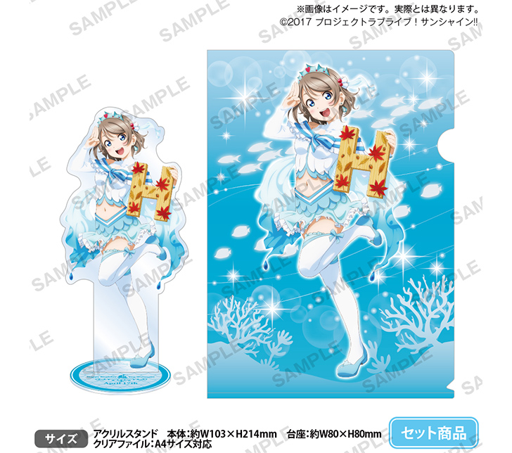 『ラブライブ!サンシャイン!!』公式通販サイト「浦の星女学院購買部」より、高海千歌のバースデーお祝いセット第7弾が登場!「君のこころは輝いてるかい?」衣装の「BIRTHDAYプレゼント2025メモリアル描き下ろしイラスト」を使用!通常のアクリルスタンドに加えてさらにBIGアクリルスタンドが付属!缶バッジとチケット風カードもセットになった豪華お祝いセットです。スペシャル台紙にセットしてお届け!千歌の誕生日をみんなでお祝いしよう!
