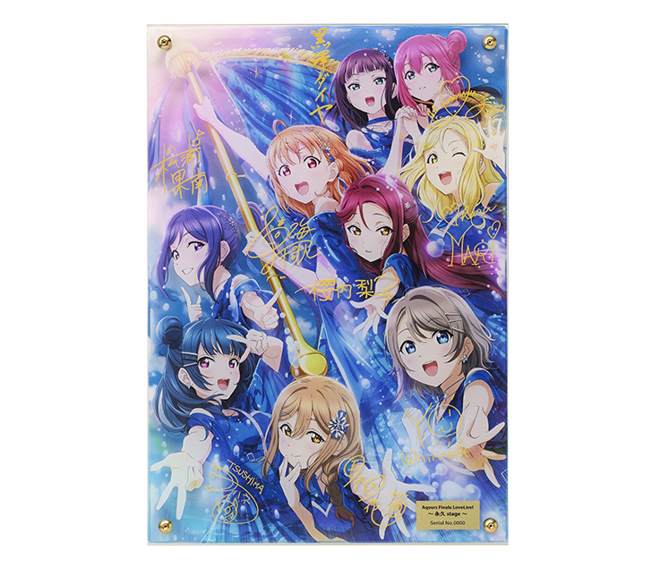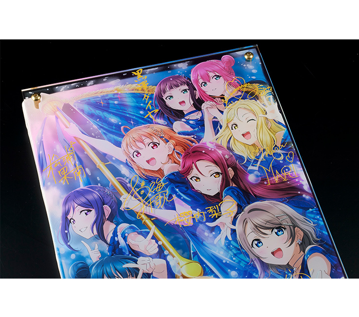 『ラブライブ!サンシャイン!!』公式通販サイト「浦の星女学院購買部」より、 Aqoursのライブキービジュアルの「レイヤードグラフ®」が登場! キャンバスボードとアクリルパネルにイラストを高精細に表現! 背景、メンバーイラスト、サインをそれぞれ異なるレイヤーで印刷!背景にはメンバーの影が映る様子も楽しめる、立体的に鑑賞可能なアイテムです。 銘板にはあなただけのシリアルナンバー入り!Aqoursと一緒にこれまでのライブの想い出を振り返ろう!