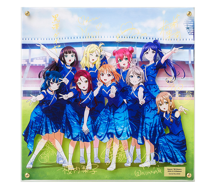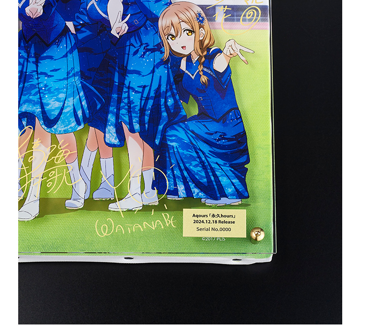 『ラブライブ!サンシャイン!!』公式通販サイト「浦の星女学院購買部」より、Aqoursの「永久hours」CDジャケットイラストを使用した、スクエア型の「レイヤードグラフ®」が初登場!キャンバスボードとアクリルパネルにイラストを高精細に表現!背景、メンバーイラスト、サインをそれぞれ異なるレイヤーで印刷!立体的に鑑賞可能なアイテムです。銘板にはあなただけのシリアルナンバー入り!Aqoursと一緒にこれまでの想い出を振り返ろう!